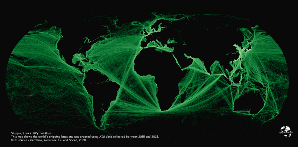 مسیرهای حرکت کشتیهای تجاری در سرتاسر جهان