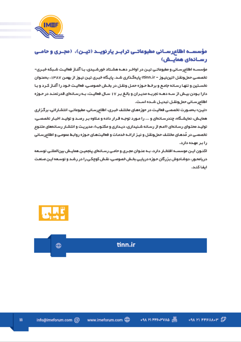 بازدید از شرکت کشتیرانی توشه بر 1404/07/16 ۱۴۰۴/۰۷/۱۶